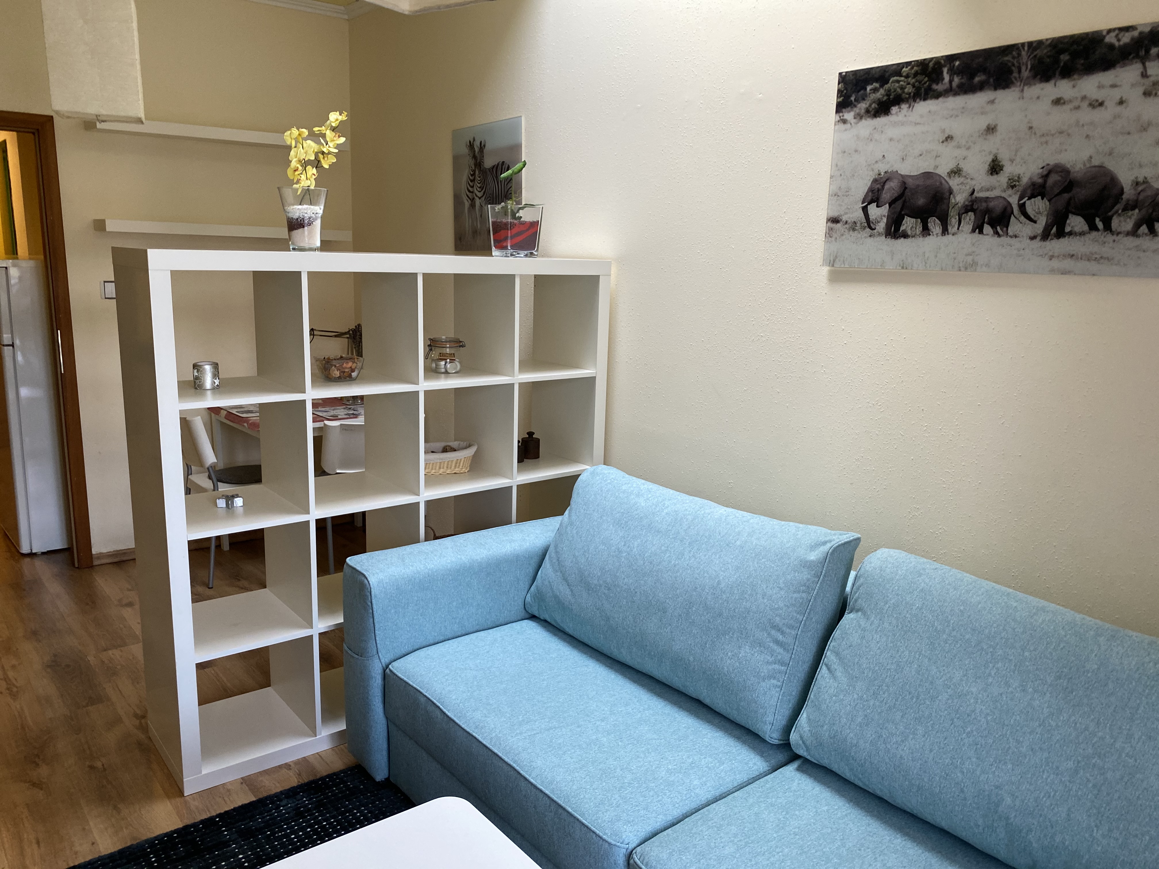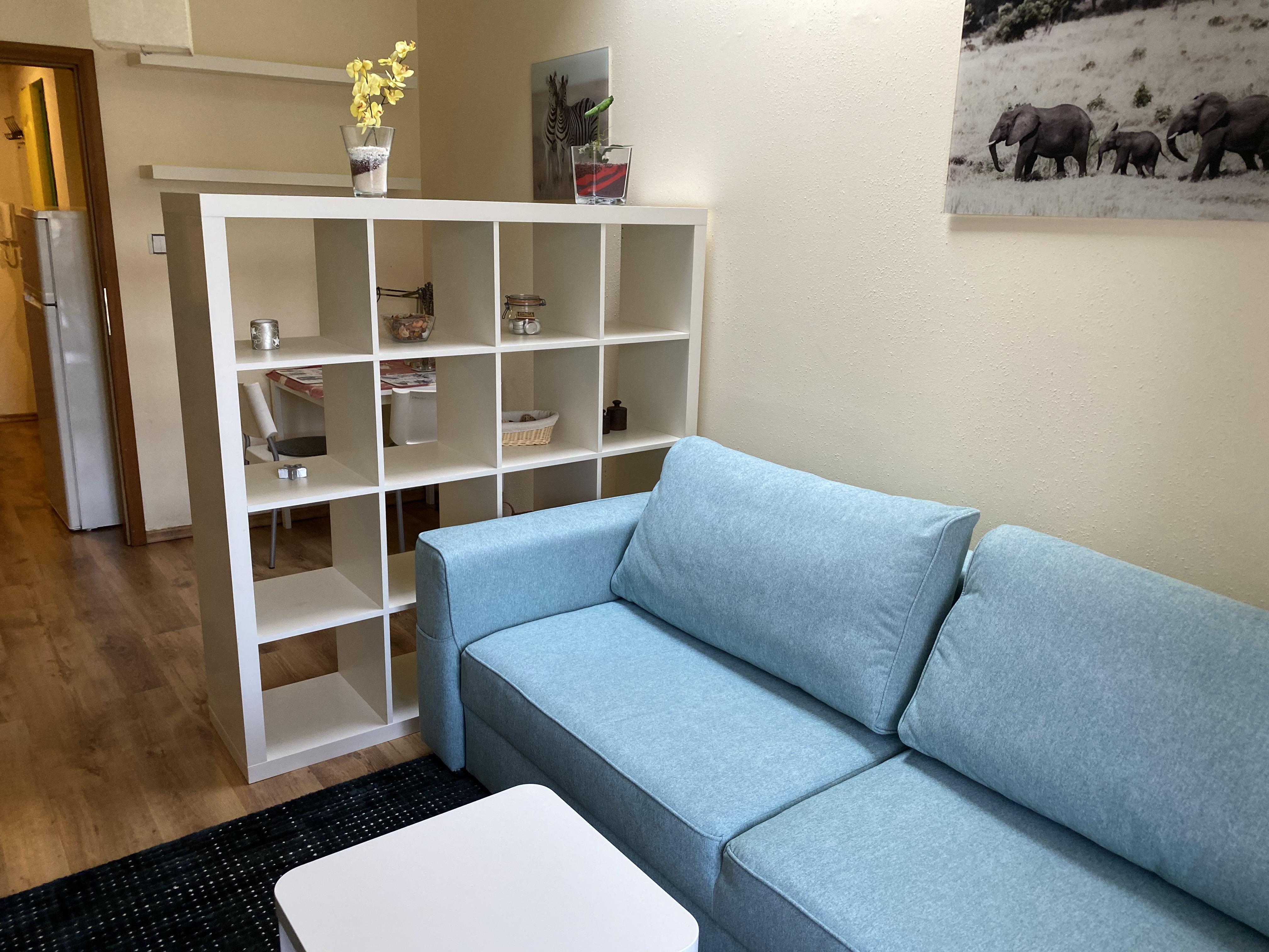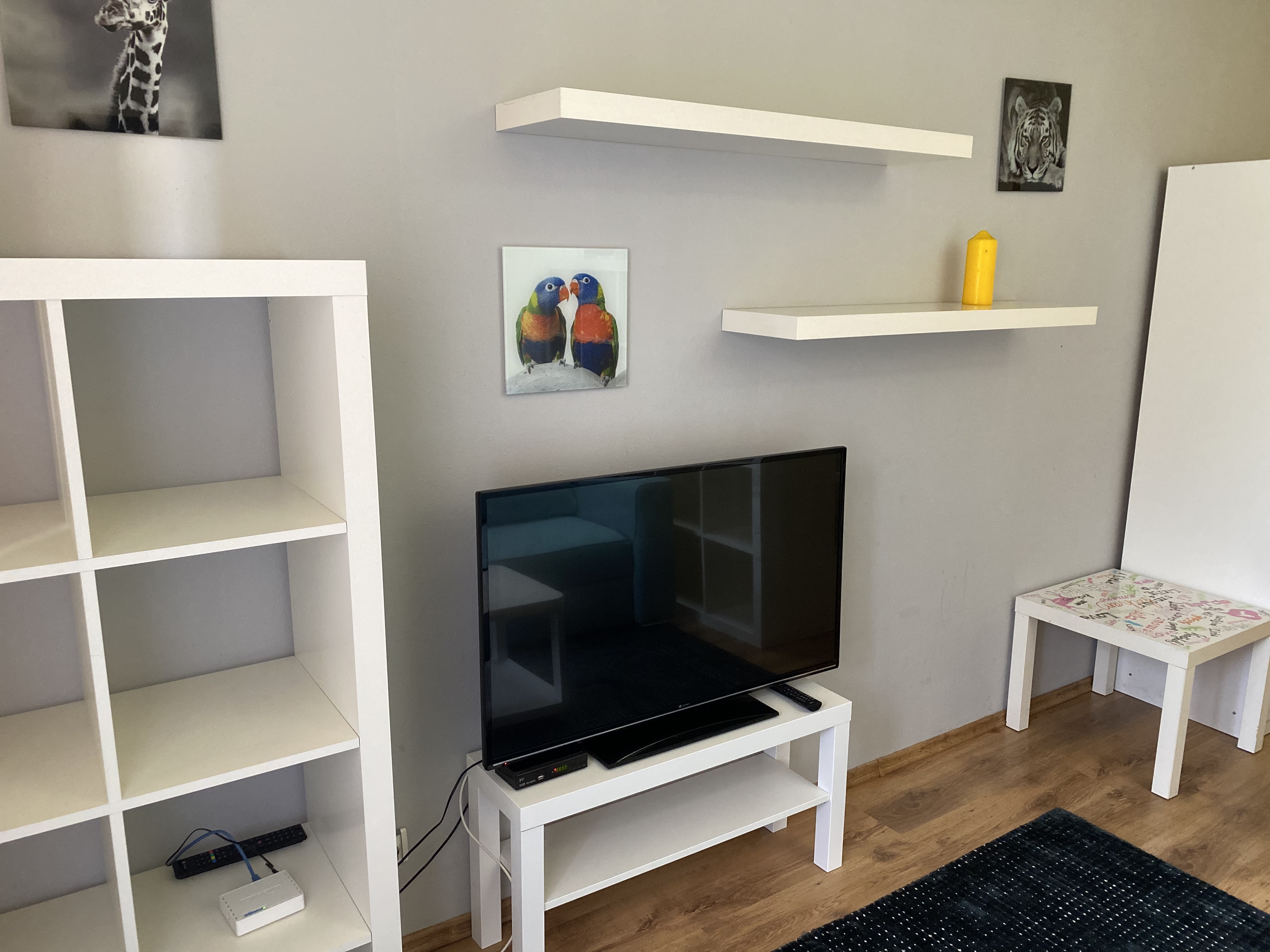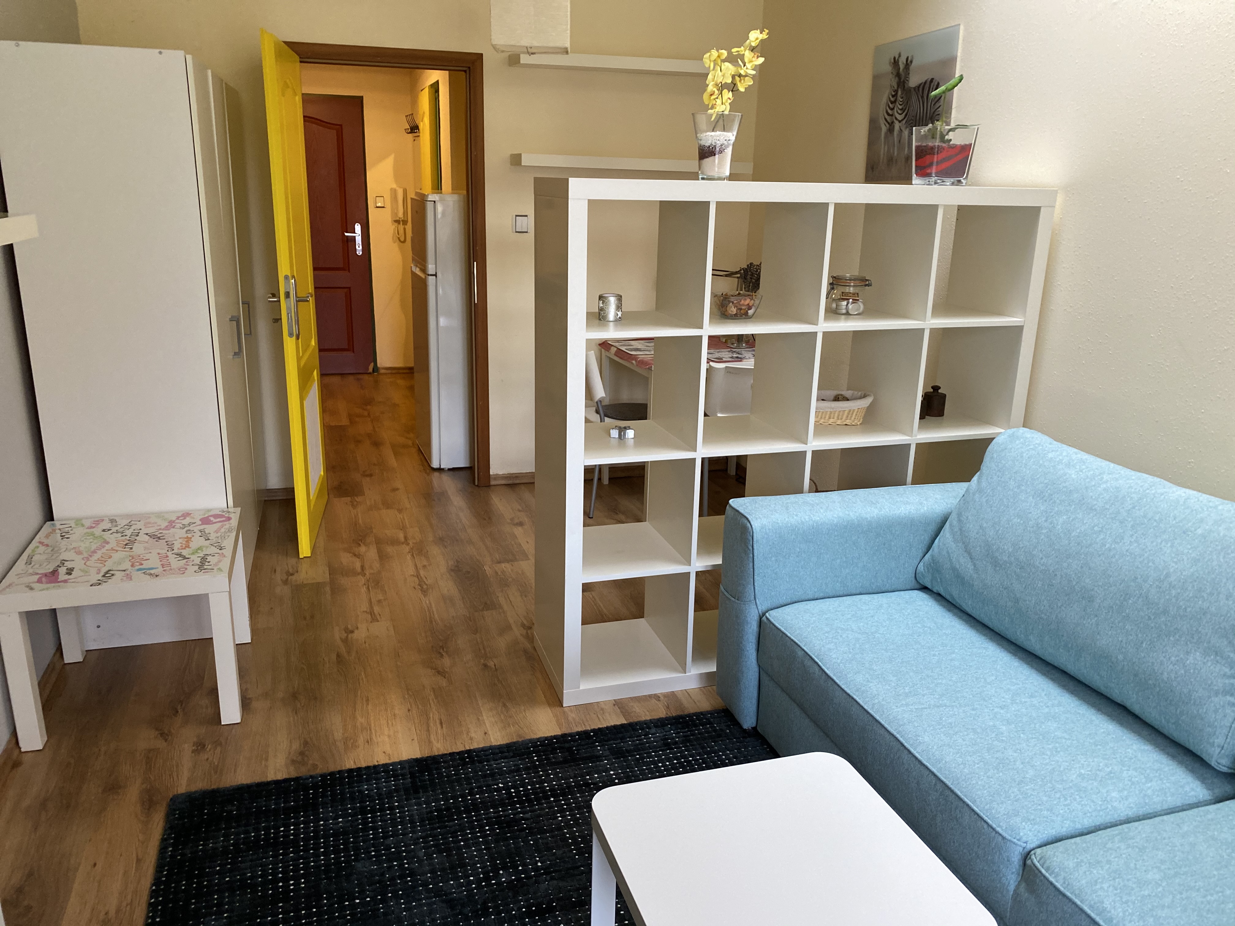 Kompletně zařízený byt 1+1 cca 30m2 , vybavená kuchyň ( skloker. deska,vestavěná mikrovlnka a lednička,), nábytek (včetně TV , sedačka - nová 2020, skříň, komoda, poličky, obrázky, dekorace, atd.), pěkná koupelna s denním světlem/střešní okno/, INTERNET, sat. a TV vysílání, bezproblémové parkování před objektem.