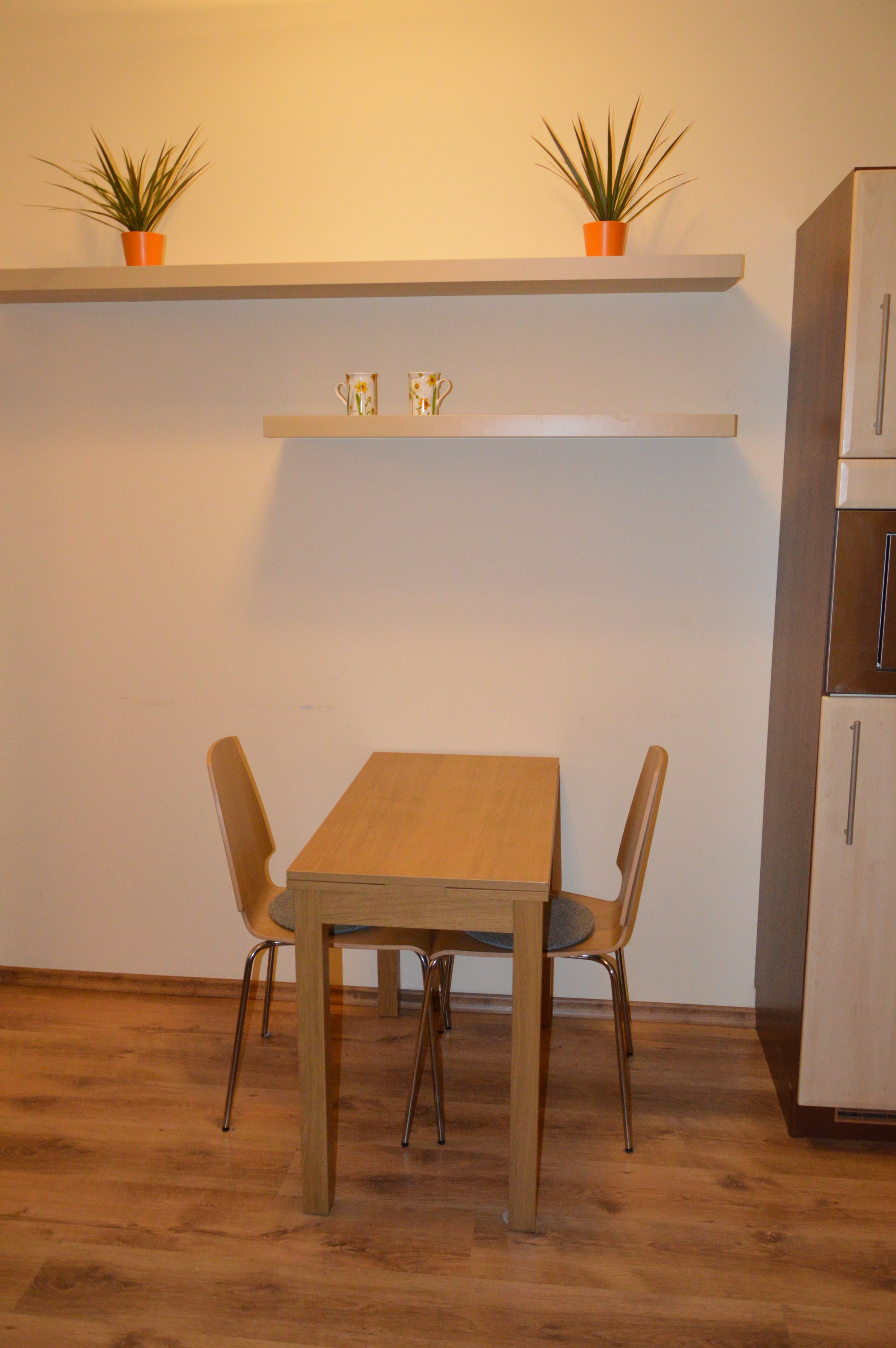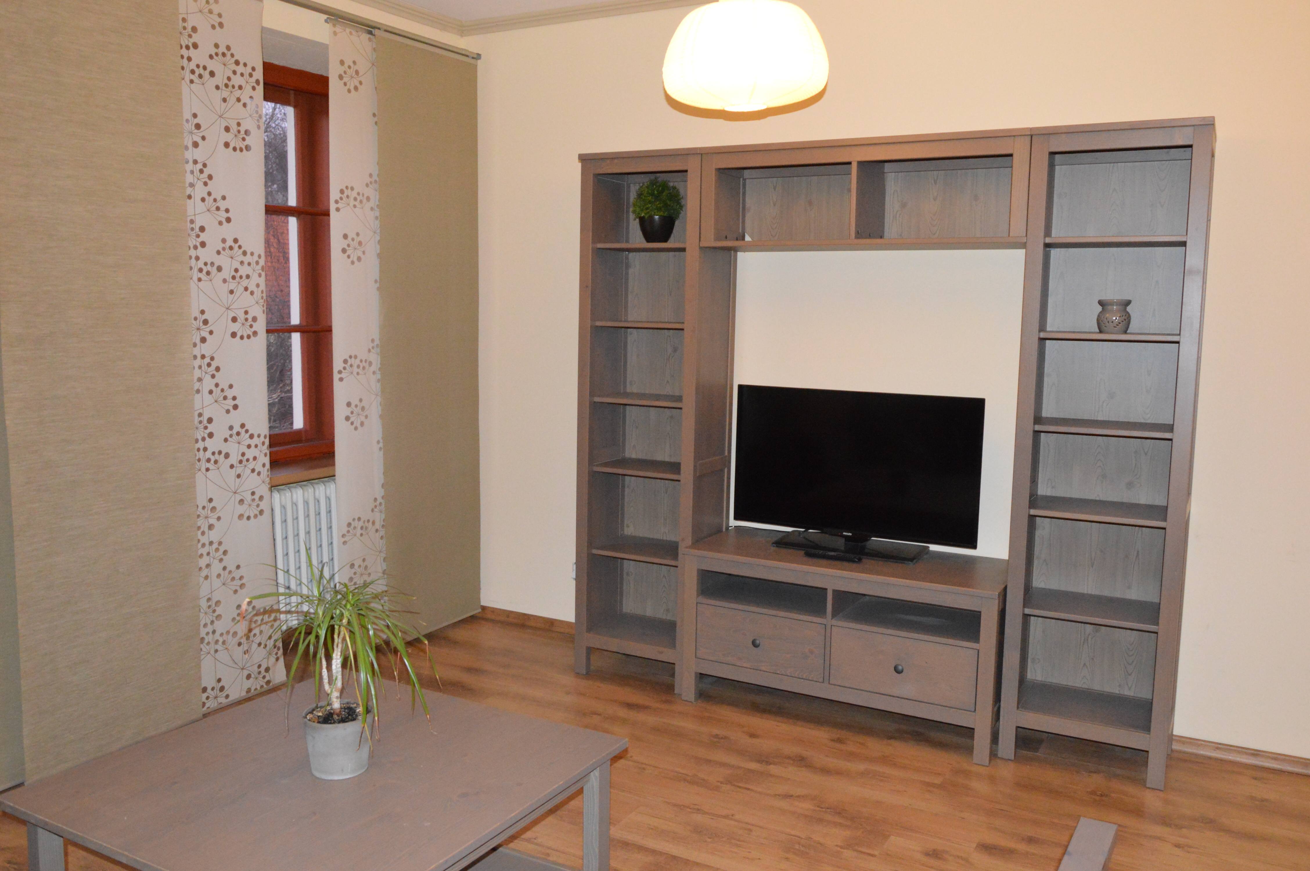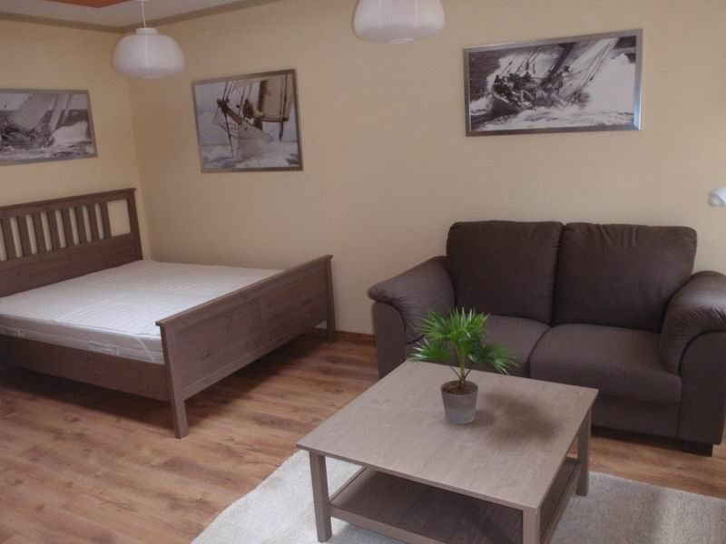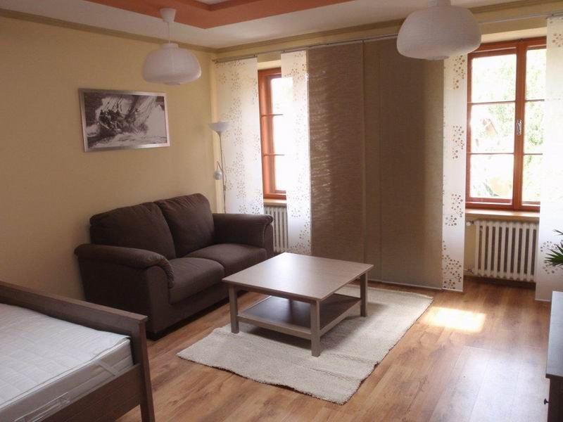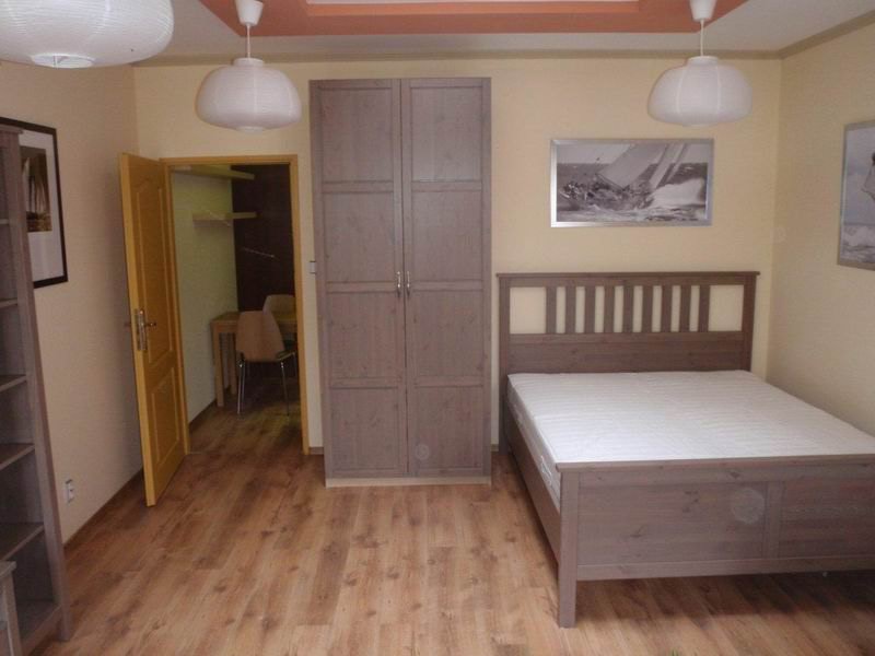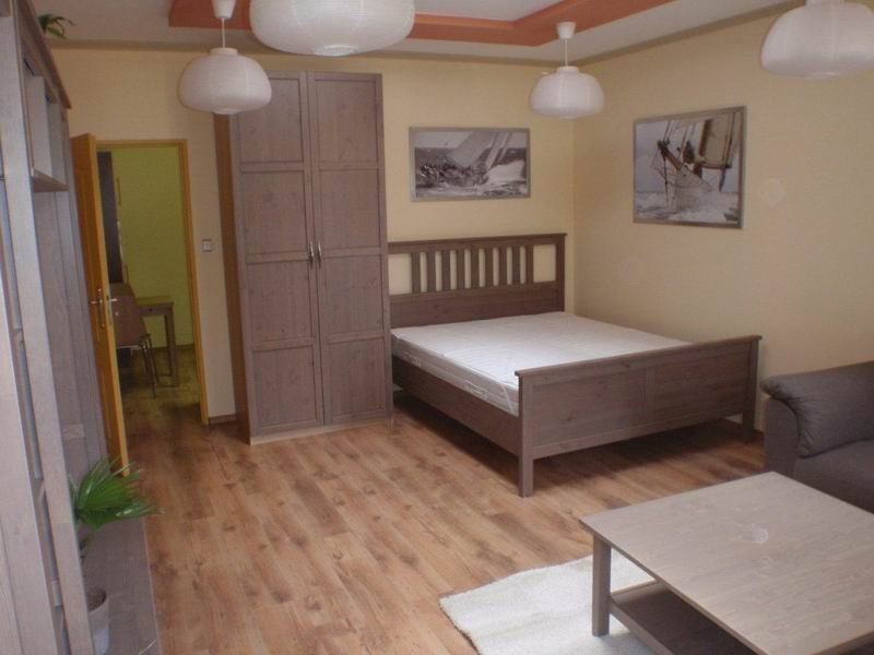 Kompletně zařízený prostorný byt 1+1 cca 40m2, vybavená kuchyň ( skloker. deska,vestavěná mikrovlnka a lednička,), nový nábytek (LED TV, dvoupostel, sedačka, včetně úložných prostor, obrázků a dekorací ), pěkná koupelna s pračkou, INTERNET, sat. a TV vysílání, parkování.